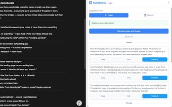 NoteSocial هو ملحق مدعوم بالذكاء الاصطناعي لمتصفح Chrome يقوم بتحويل ملاحظاتك في Notion بسلاسة إلى محتوى جذاب لوسائل التواصل الاجتماعي مصمم لمنصات مثل Twitter و LinkedIn. تتيح هذه الأداة المبتكرة للمستخدمين إنشاء منشورات على الفور من أي صفحة في Notion، مما يضمن مشاركة الأفكار القيمة بفعالية عبر قنوات وسائل التواصل الاجتماعي. مع ميزات مثل الإخراج المتعدد المنصات، يمكن للمستخدمين تحسين محتواهم لـ Twitter و LinkedIn، مما يجعله مناسبًا لجماهير متنوعة. توفر الواجهة البديهية أيضًا تاريخ المحتوى لتتبع جميع المنشورات التي تم إنشاؤها، مما يضمن التنظيم وسهولة الوصول إلى الإبداعات السابقة.